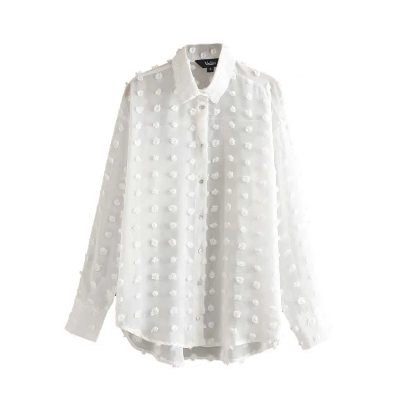 Cette chemise manches longues est une tenue adaptée à toutes les occasions. Une chemise pour femme romantique indémodable qui reflète à la perfection votre bon goût pour la mode.