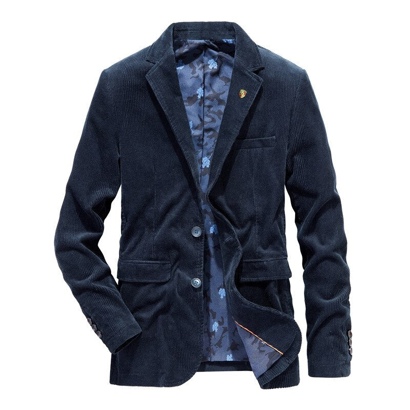 Veste Bleu Travail Vintage : Blazer décontracté en velours côtelé pour hommes