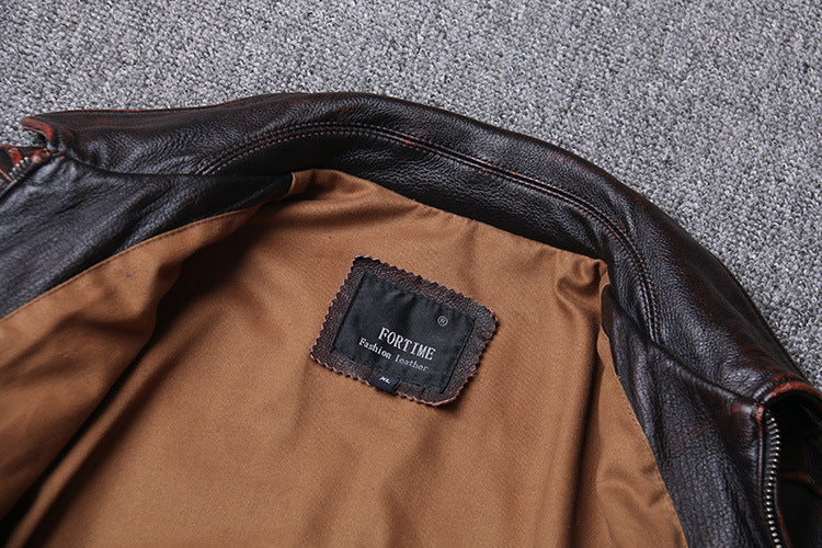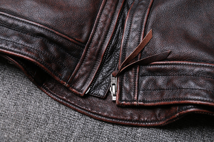 Veste Moto Cuir Marron Vintage : avec des matières de qualités