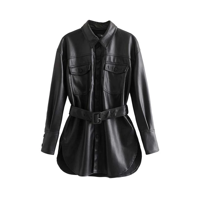 A comfortable vintage leather jacket with a biker style